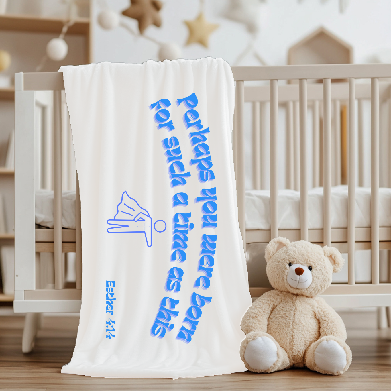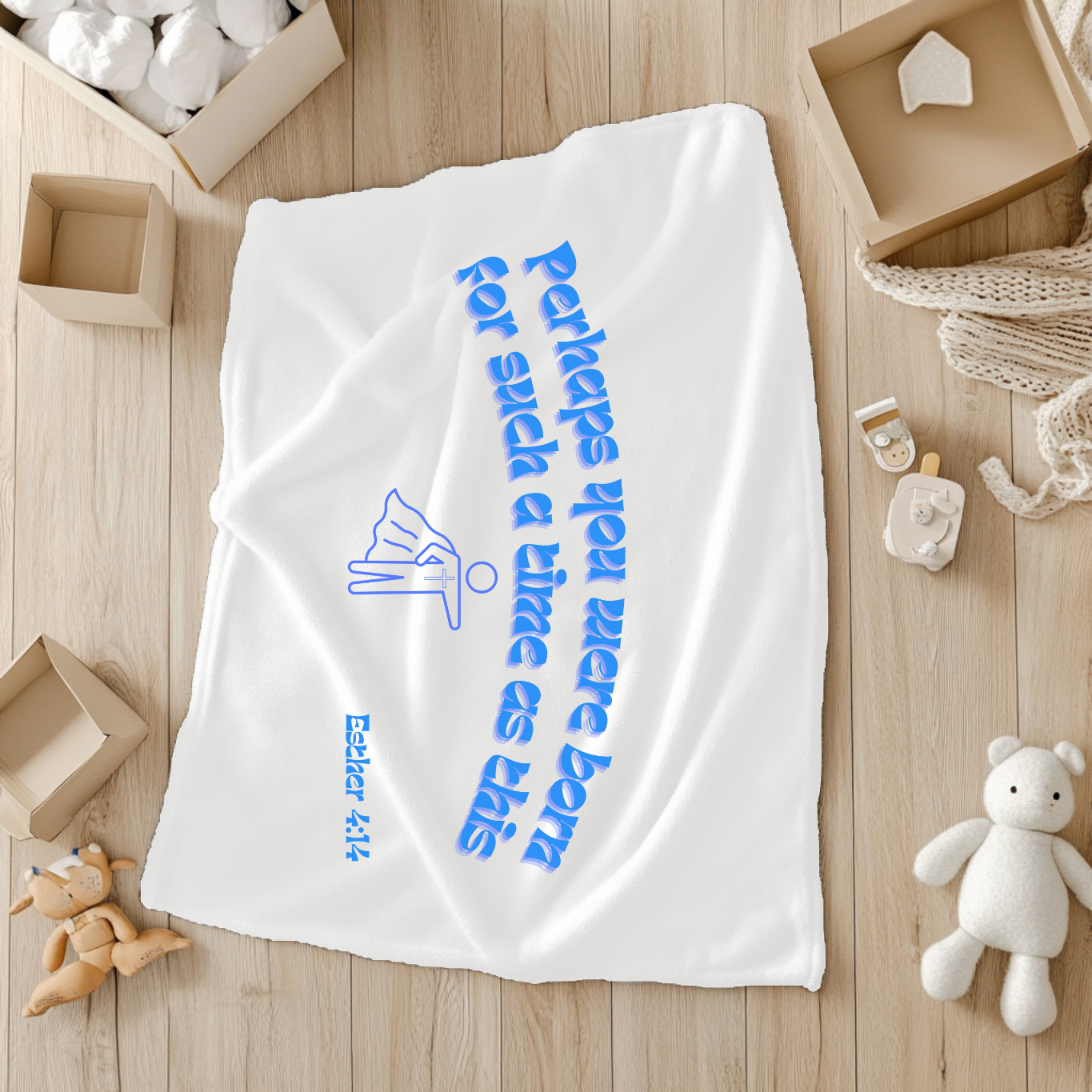 Available in two soft, soothing colors, these blankets are printed with faith-filled designs, featuring lovingly chosen Bible truths, turning everyday snuggles into reminders of God’s promises and presence. Whether you're gifting it for a baby shower or blessing your own child, this blanket becomes an instant favorite—for both the heart and home.