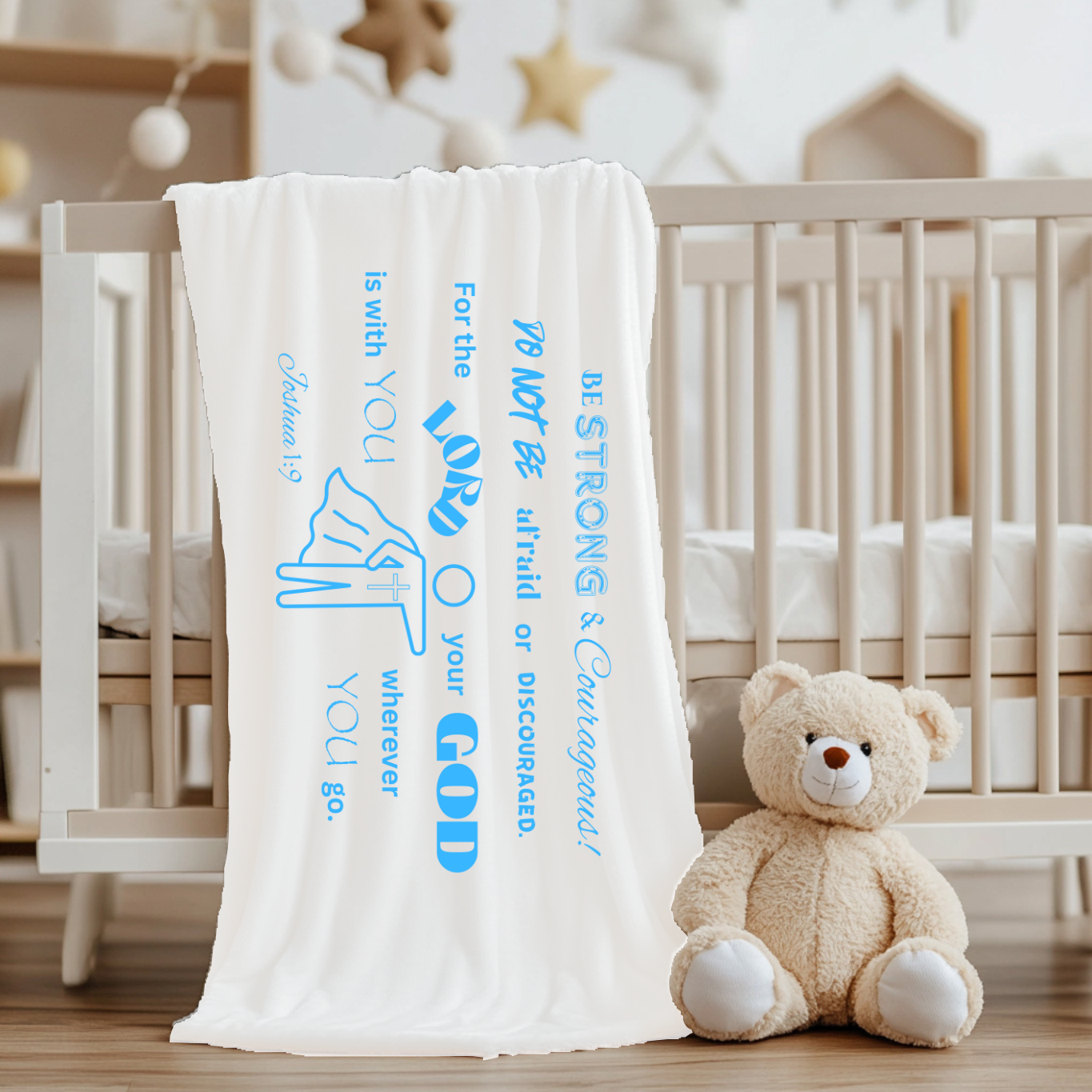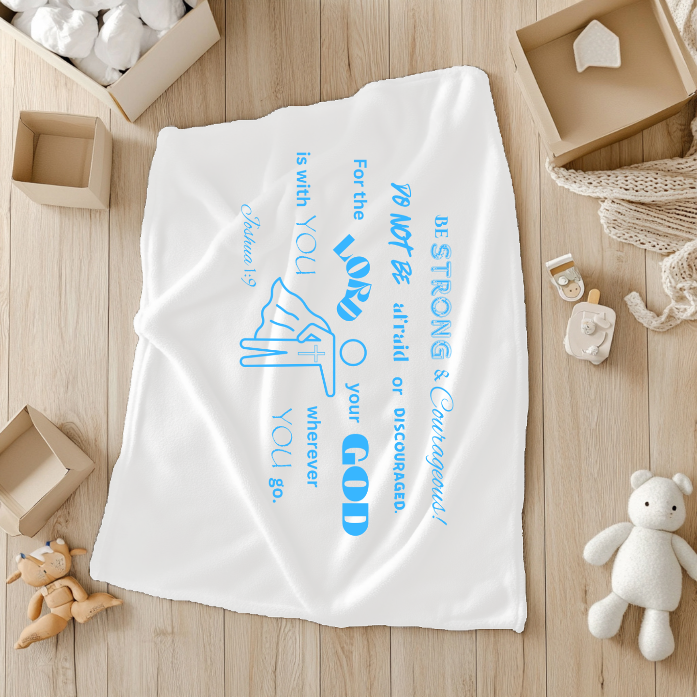 Available in two soft, soothing colors, these blankets are printed with faith-filled designs, featuring lovingly chosen Bible truths, turning everyday snuggles into reminders of God’s promises and presence. Whether you're gifting it for a baby shower or blessing your own child, this blanket becomes an instant favorite—for both the heart and home.