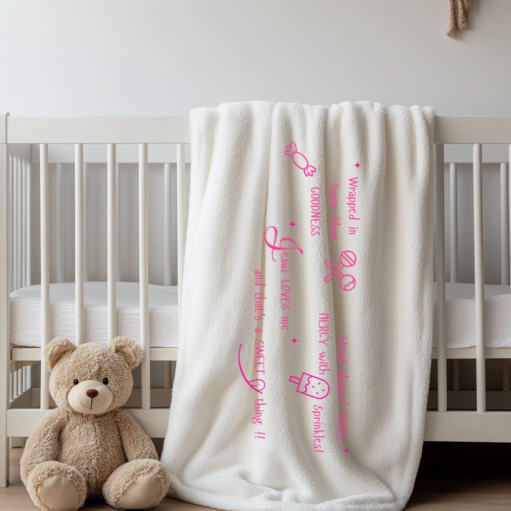Available in two soft, soothing colors, these blankets are printed with faith-filled designs, featuring lovingly chosen Bible truths, turning everyday snuggles into reminders of God’s promises and presence. Whether you're gifting it for a baby shower or blessing your own child, this blanket becomes an instant favorite—for both the heart and home.