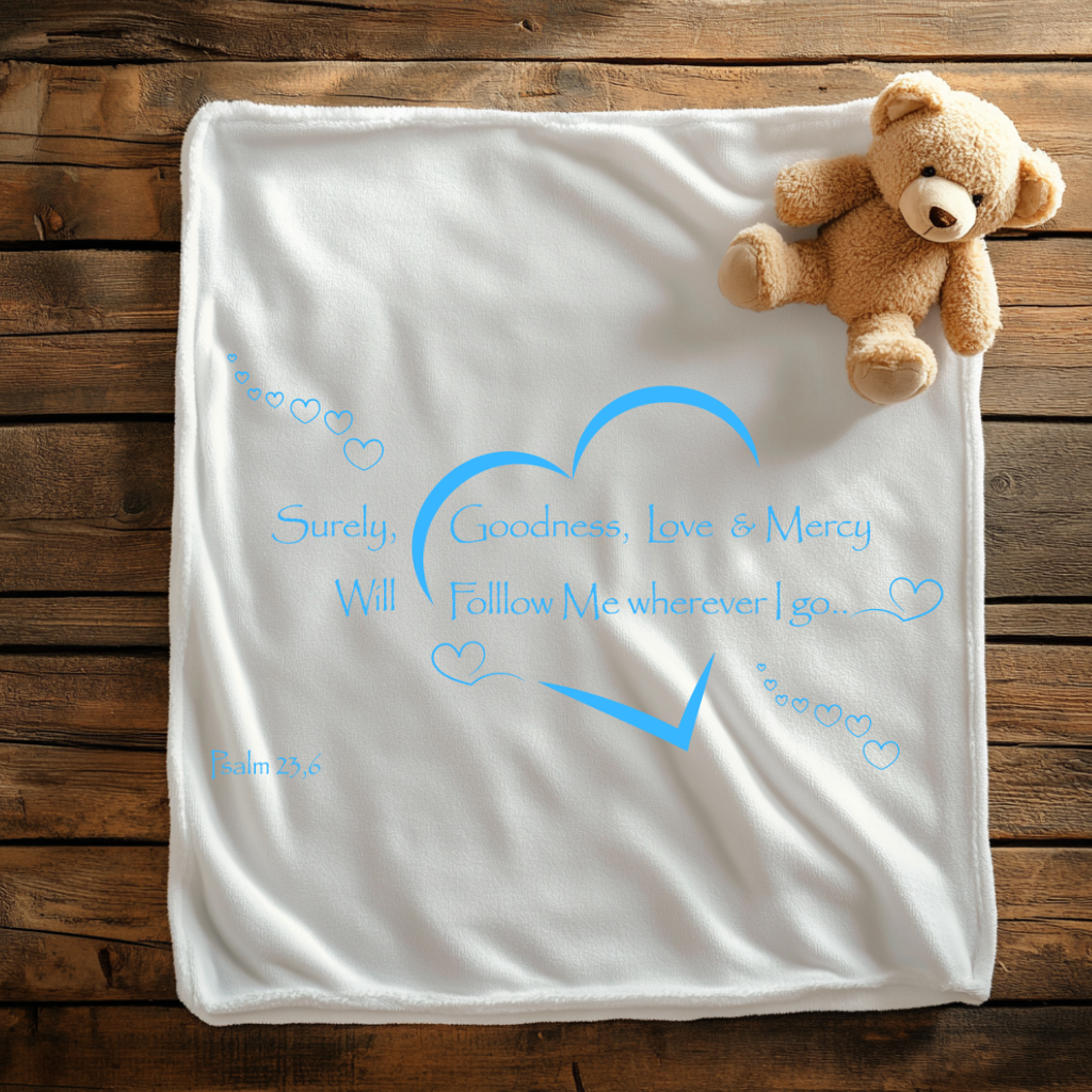 Available in two soft, soothing colors, these blankets are printed with faith-filled designs, featuring lovingly chosen Bible truths, turning everyday snuggles into reminders of God’s promises and presence. Whether you're gifting it for a baby shower or blessing your own child, this blanket becomes an instant favorite—for both the heart and home.
